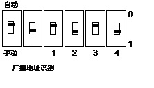 拨码开关最左边一位为控制方式选择拨码,用于选择模块的控制方式为自动控制还是手动控制。拨上为自动控制方式,拨下为手动控制方式.,如图1-1所示。